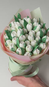 An airy, gentle composition of marshmallow tulips, touched with dreamy softness. Sweet, poetic, and perfect for adding a little magic to the day.
